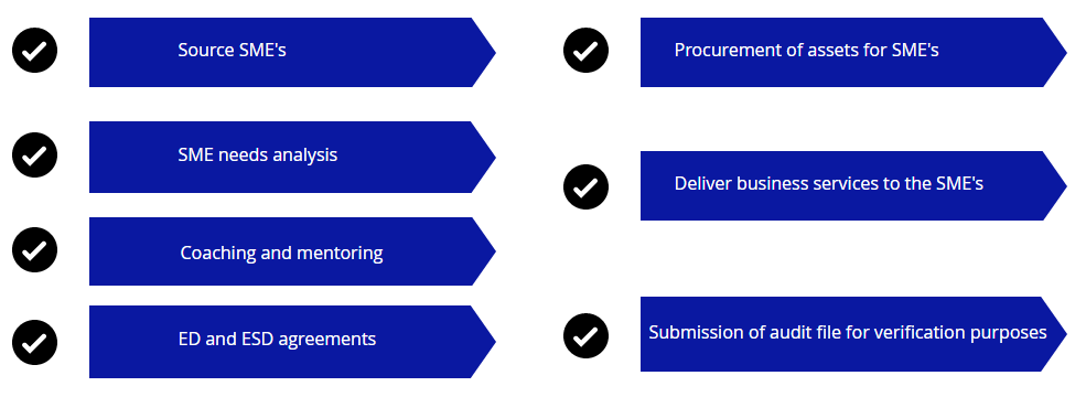 Your company’s enterprise and supplier development spend can be used to create jobs and build sustainable long-term economic growth for small businesses through our enterprise development programme comprising financial and non-financial support.